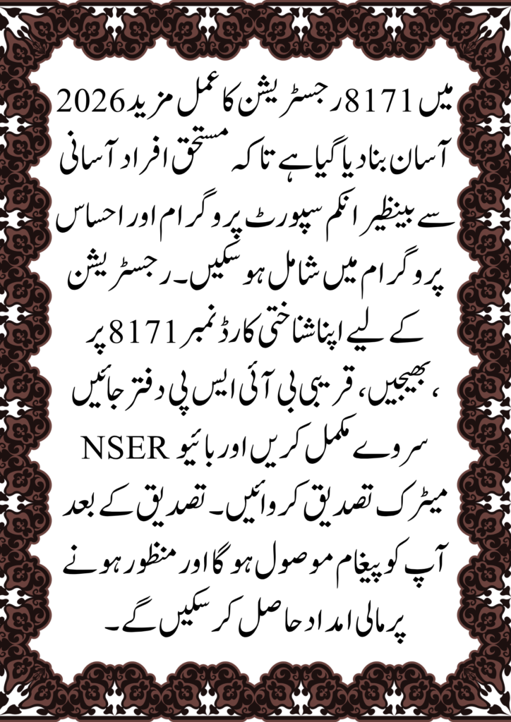 Across Pakistan, the Benazir Income Support Programme (BISP) and the Ehsaas initiative have long stood as vital lifelines for low-income families, offering essential financial support to those who need it most. In 2026, the government has taken significant steps to make this support even more accessible. The 8171 registration process, through which families apply for assistance, has been simplified and made easier to navigate.