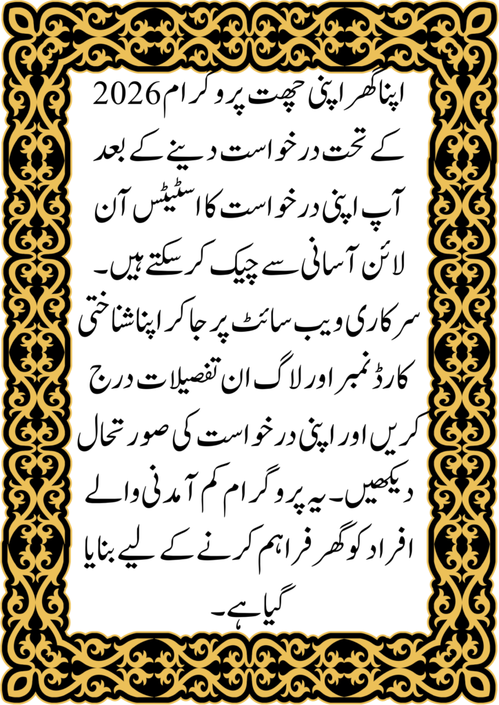 The Apna Ghar Apni Chat Application Status Check 2026 process is simple and accessible through the official online portal. By using your CNIC and login details, you can stay updated on your application progress without visiting offices. Always rely on official sources and avoid scams to ensure a smooth experience.